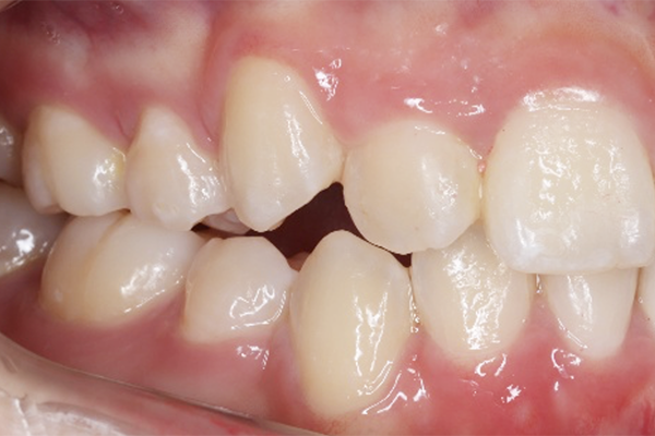 口腔内を診てみると右側が八重歯の状態で、左側の噛み合わせももう少し治した方が良い状態でした。